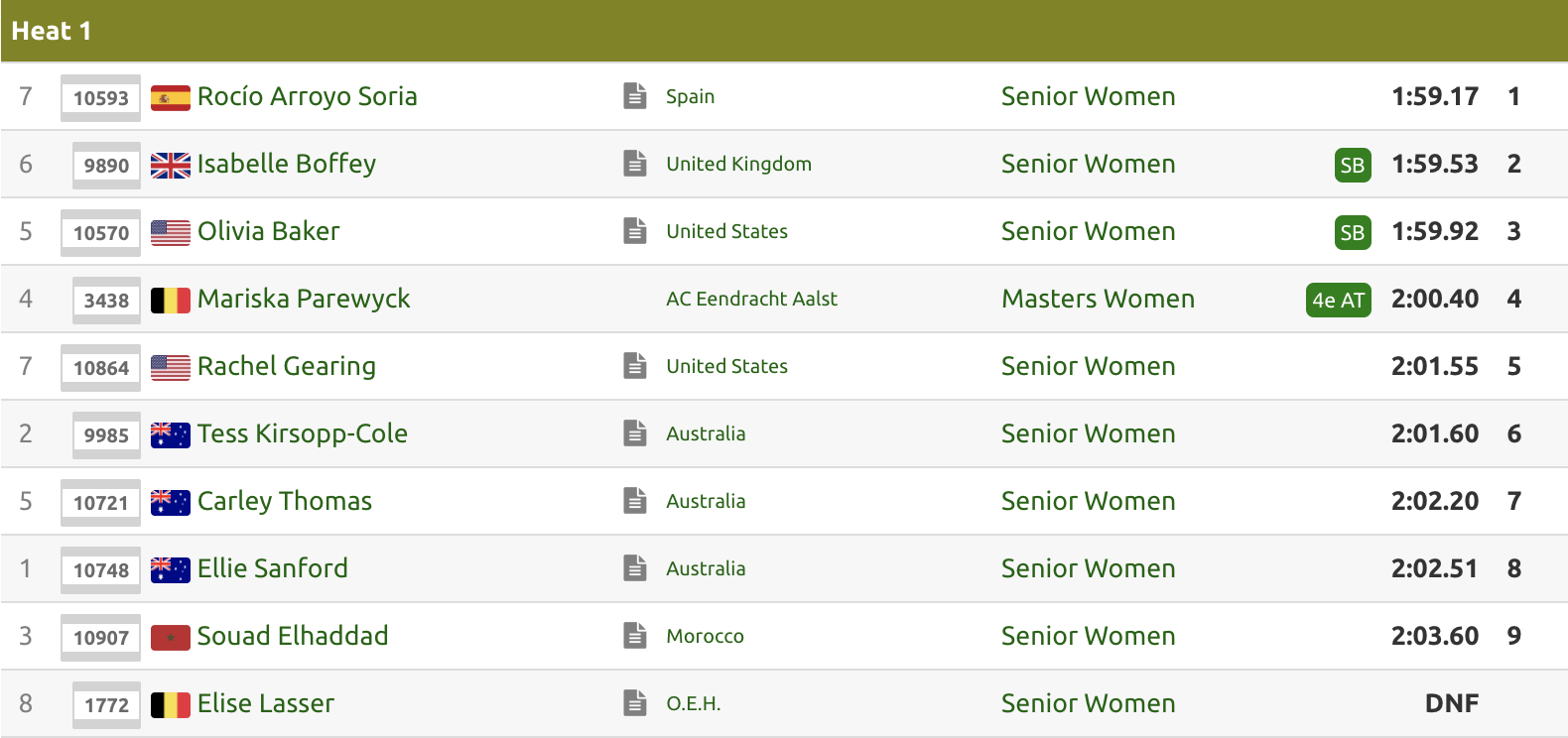 Con esta marca de 1:59.17 y la victoria en el Meeting de Oordegem, del World Athletics Continental Tour en categoría Bronze, Rocío Arroyo da un paso de gigante para lograr la clasificación al Mundial de Tokio por la vía del world ranking. En cualquier caso, tratará de obtener la mínima directa (1:59.00), o apuntalar del todo la clasificación por puntos, el próximo 14 de agosto en Guadalajara.