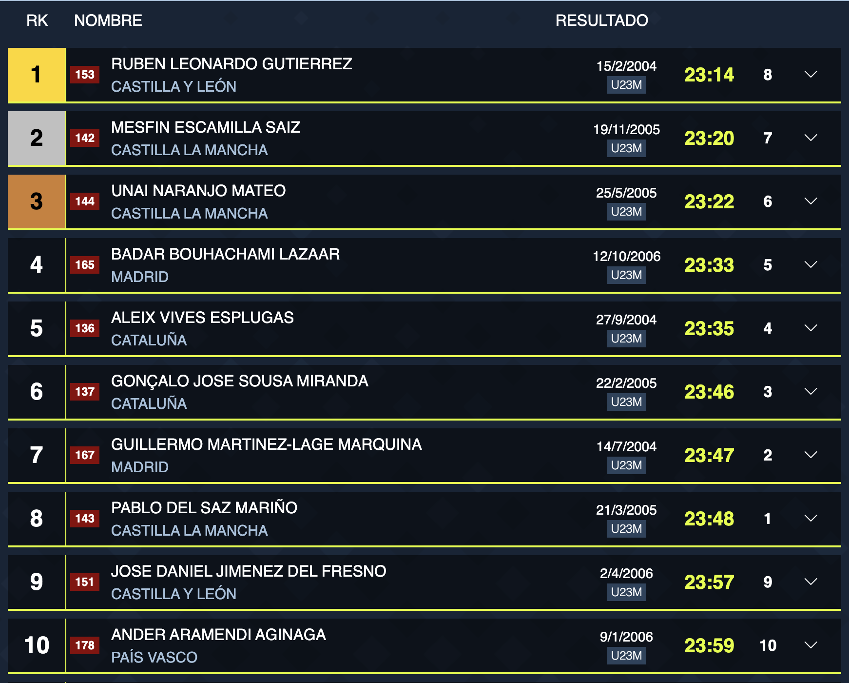 Resultados Sub-23 Hombres:
